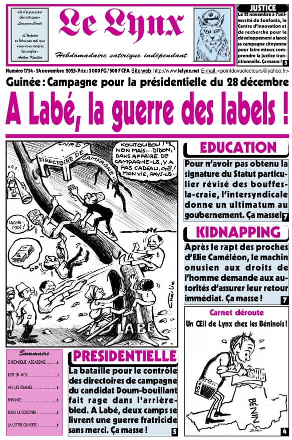 Actualité : La Une du Lynx N° 1754 du lundi 24 novembre en kiosque