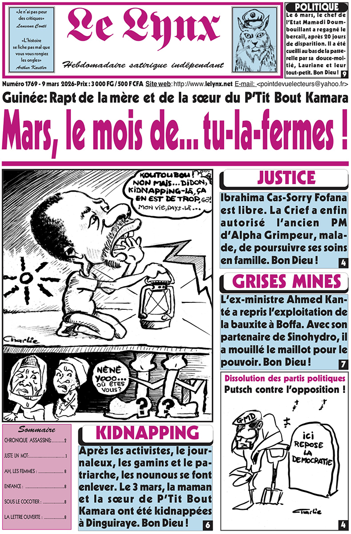 Actualité: La Une du Lynx N°1769 du 9 mars en kiosque
